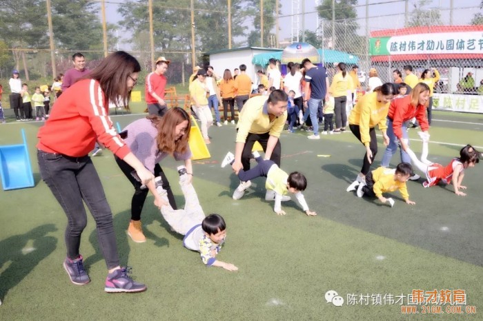 2018年11月24日上午,暖陽高照,廣東順德陳村偉才幼兒園 “悅運動,悅成長” 2018年親子運動會在男家長和孩子們精彩的啦啦操中拉開了序幕! 在主持人的組織下,爸爸媽媽與孩子手牽手排著整齊的隊列進場,肩并肩完成一系列的親子活動,飄揚的彩虹傘下,充滿歡聲笑語。親子通過自己的努力,給自己的集章卡上蓋滿了印章,換取自己心儀的禮物。 通過這樣一場親子活動,調動了家長和孩子參與活動的積極性,引發家長對孩子鍛煉的重視程度。讓孩子在運動中體驗別樣的愉快,家長也重溫童年的快樂!