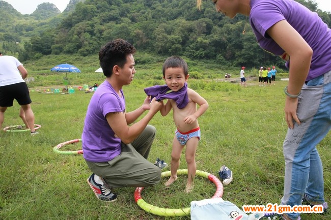 首先是幫孩子穿衣服比賽。家長們先將孩子用坐“手臂轎子”的方式運到指定地點,由爸爸幫寶貝穿衣服,然后再運回起跑處。