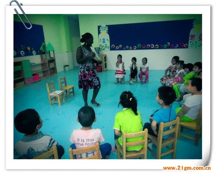 升旗儀式結束后,孩子們回到了教室。外籍老師Pearl正在給孩子們上課,寶貝們聚精會神,跟著老師時而手舞足蹈,時而高聲朗讀,沉浸在學習的樂趣當中。