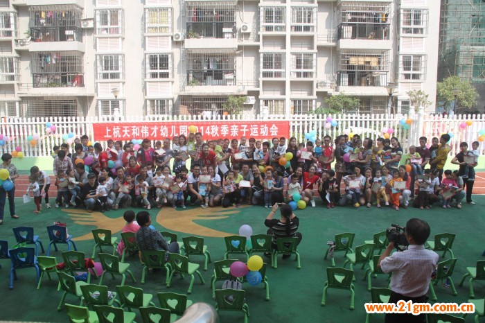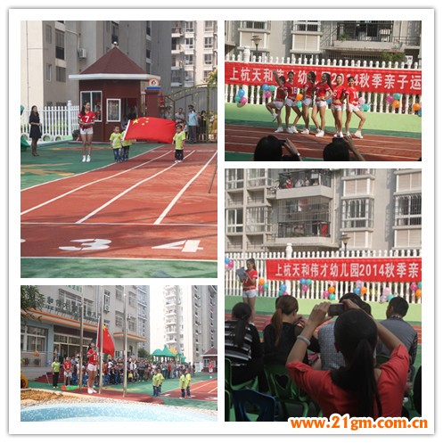 11月1日星期六上午9:00,在激昂的運(yùn)動員進(jìn)行曲中,上杭天和偉才幼兒園2014秋季親子運(yùn)動會拉開了序幕。開幕式上,我們的小小護(hù)旗手踏著整齊的步伐,家長、老師和孩子們進(jìn)行了莊嚴(yán)的升旗儀式。隨后,幼兒園教師表演了活潑有趣的健身舞,展示了上杭天和偉才幼兒園師生積極、勤奮、樂觀、向上的精神面貌。吳園長熱情洋溢地致歡迎辭并宣布2014秋季親子運(yùn)動會正式開始!