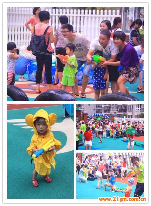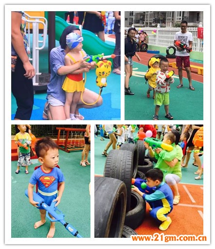 而接下來的“水槍大戰(zhàn)”游戲更是激動人心,可愛的孩子們精心挑選屬于自己的水槍,裝備齊全,把自己當(dāng)做勇猛的戰(zhàn)士,面對“槍林彈雨”毫不膽怯,直面挑戰(zhàn),拼盡全力保護著自己的“碉堡”。大朋友們和老師們在孩子們的熱力帶動下也不示弱,全情投入“戰(zhàn)斗”,水槍大戰(zhàn)簡直變成了潑水節(jié),快樂的氣氛感染著在場的每一個人。