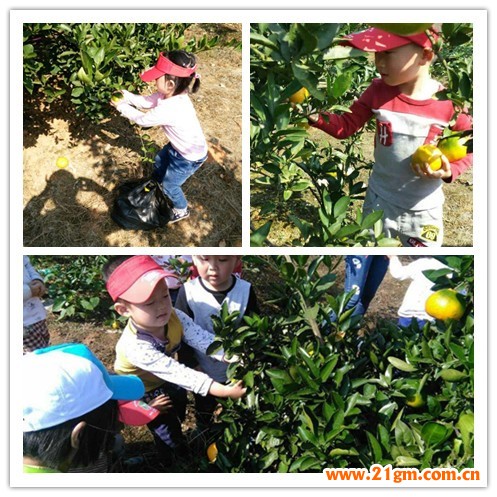 半個(gè)小時(shí)的車(chē)程,偉才寶貝們就到達(dá)桔子園啦!孩子們一到桔子園,立刻就被周?chē)木吧×耍黄慕哿郑粋€(gè)個(gè)金燦燦的桔子,讓孩子們十分驚喜、好奇、興奮,圍著老師七嘴八舌地不斷提問(wèn)。聽(tīng)完老師的一番講解,孩子們便迫不及待地來(lái)到桔樹(shù)邊,伸長(zhǎng)小手開(kāi)始采摘了,而后又彎著腰,忙著把摘下來(lái)的桔子小心翼翼地放進(jìn)塑料袋里。“我摘的桔子好黃!”“我摘的桔子好大!”“我摘的桔子好甜!” “我要把今天摘的桔子帶給爸爸媽媽爺爺奶奶嘗!”……你采、我摘,大家吃,忙得不亦樂(lè)乎!一時(shí)間,桔園里歡聲笑語(yǔ),熱鬧非凡。