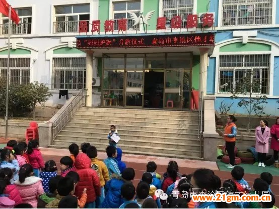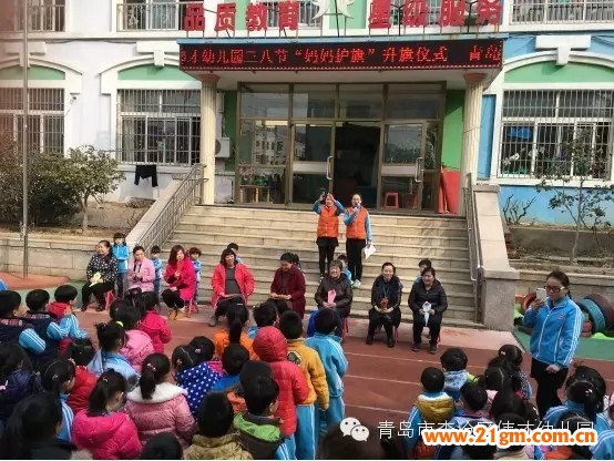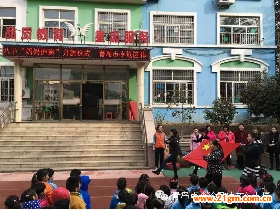 青島市李滄區偉才幼兒園三八節“媽媽護旗”升旗儀式