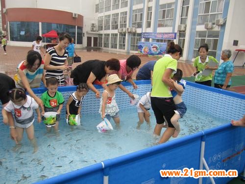 有的寶寶爸媽為幫助寶寶,在一旁可是耐不住性子了,在抓魚池外直接俯下身子用手去撈魚。雖然彼此身上都被汗和水浸濕,可大家無論是臉上還是心里都是快樂無比、開心無限的!