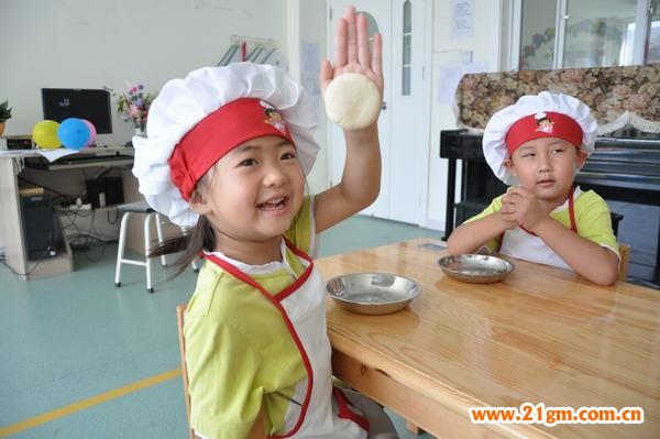 “小朋友,跟老師做,拿起面團,先揉一揉捏一捏,看看你們手中的面團是不是變軟了?”偉才幼兒園的老師正興致勃勃地上著一堂特殊的手工課——做月餅。9月18日,山東壽光國際商貿城偉才幼兒園舉辦的“中秋我為媽媽做月餅”活動,與以往的親子活動不同,這次完全是由孩子自己完成制作月餅的過程,家長的任務只是品嘗。