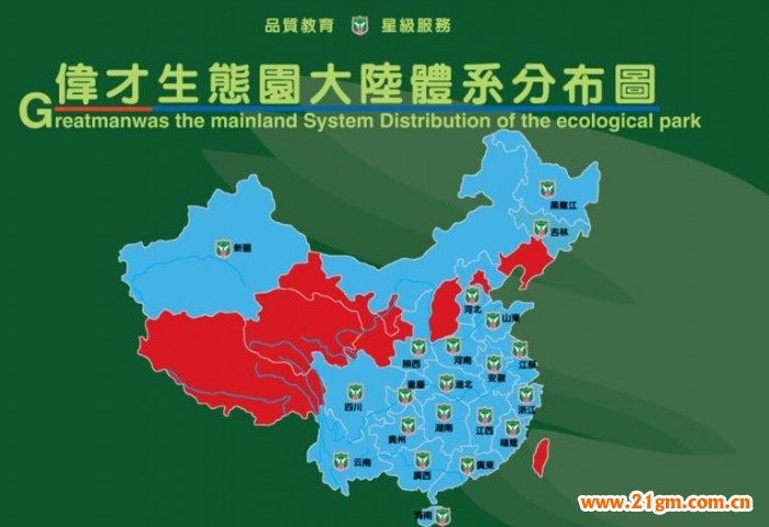 偉才園所遍布全國二十幾個省市、自治區, 規模達到260多家。其中省一級示范園所占10%,市一級示范園所占50%。