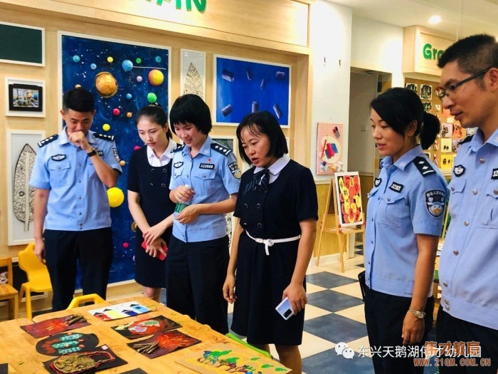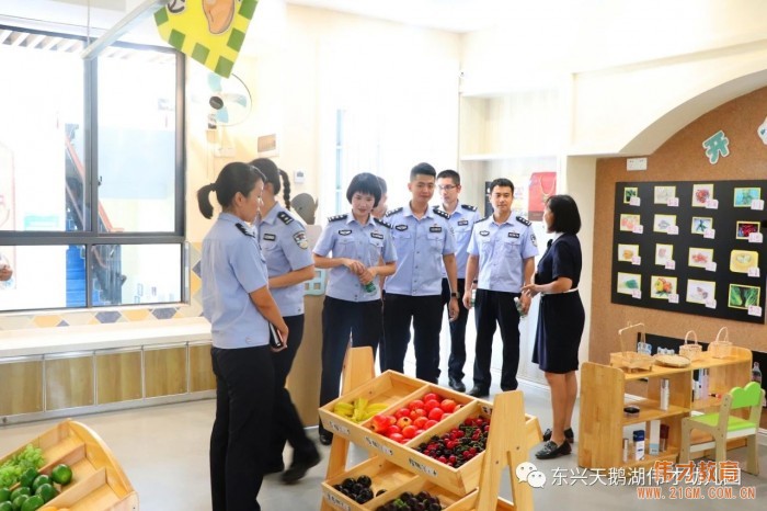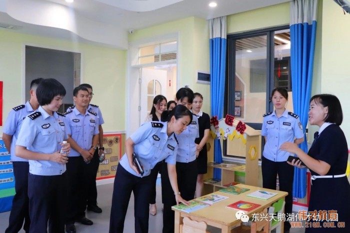 會后韋園長引領民警們深入幼兒園班級、活動室等進行了參觀及介紹,讓大家了解孩子日常在園開展的活動和課程等。