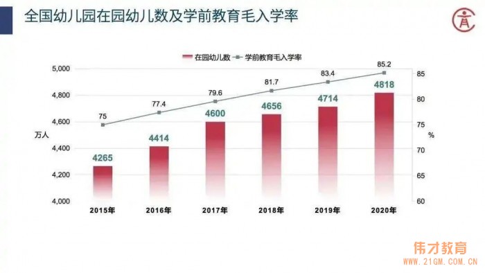 日前,國務院新聞辦公室舉行新聞發布會,介紹優化生育政策促進人口長期均衡發展有關情況答問。 教育部基礎教育司司長呂玉剛介紹,提高學前教育的普及普惠水平,實現幼有善育,是服務國家人口發展戰略、促進三孩政策順利實施的重要舉措。 黨的十八大以來,我國學前教育取得了跨越式快速發展,到2020年,全國學前三年的毛入園率已達到了85.2%,普惠性幼兒園覆蓋率達到了84.7%。按照黨中央、國務院關于健全普惠性學前教育保障機制的部署要求,下一步,教育部將會同中央有關部門,以有效支撐三孩政策實施為重要目標,研究制定部署實施第四期學前教育行動計劃。 一是要進一步提高學前教育普及普惠水平。到2025年,全國學前三年毛入園率要達到90%以上,并且要進一步提高普惠性幼兒園覆蓋率。 二是要進一步擴大普惠性學前教育資源。充分考慮出生人口的變化和城鎮化進程,以縣(區)為單位,科學布局普惠性幼兒園。就是要把這個規劃做好。要大力發展公辦園,完善小區配套幼兒園建設管理機制。與此同時,積極支持民辦園提供普惠性服務,健全城鄉學前教育公共服務體系。 三是要完善經費投入保障機制。落實政府投入為主、家庭合理分擔、其他多種渠道籌措經費的保障機制,加大對家庭經濟困難兒童入園的資助力度。 四是要全面提升保教質量。深入貫徹落實《3-6歲兒童學習與發展指南》,堅持以游戲為基本活動,科學推進小學和幼兒園有效銜接。教育部今年已經專門印發了關于實施幼兒園和小學科學銜接的意見。在幼兒園要幫助孩子做好小學入學準備,在小學特別是針對1年級孩子,要幫助做好入學適應,使雙方有效銜接,搭建起橋梁。同時,建立起幼兒園科學保教質量評估制度,引領幼兒園提高育人質量和水平,促進兒童身心健康發展。 偉才教育,浸潤學前教育事業20余年,致力于為全國各地幼兒及家庭帶去高品質學前教育服務。旗下高端幼兒園品牌“偉才”早已深入人心,普惠品牌“厚永”正在成為普惠幼兒園加盟領導品牌,幫助園所標準化管理,規范運營,降低成本,招生幫扶,健康發展。 追求生命自然成長,讓愛育見未來。偉才教育將秉守初心,緊跟時代要求,攜體系幼兒園共創未來——屬于學前教育事業的最好未來!
