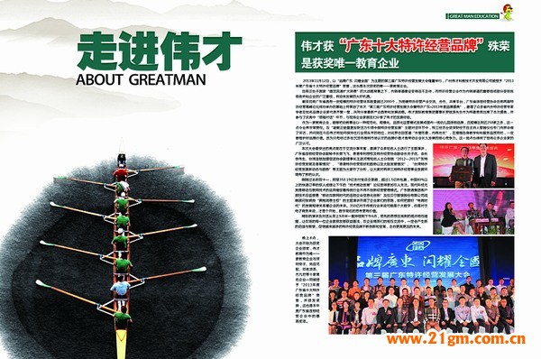本期雜志一如既往的忠實于“記錄、傳遞、展現”,收錄了偉才在各個方面所獲得的發展及突破。可喜的是在全體偉才人的共同努力下,偉才在2013年下半年取得了優異的成績,也獲得了同行和社會的高度贊揚和肯定,如偉才與全國范圍內各大地產的合作在七月至十月間掀起了一個高潮,僅四個月時間就成功簽約11家,而且還包括像“山東魯能集團”、“廣東富力地產”這樣的地產界著名上市品牌。在品牌影響力上,偉才下半年先后獲得“中國兒童教育最具競爭力領軍品牌”和“廣東十大特許經營品牌”兩項大獎,并且通過了“廣州市著名商標”的認定,再次證明了偉才教育的實力及品牌的社會認可度。