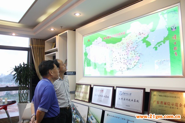 董事長羅駭浪向張逢堂將軍介紹公司概況以及偉才園所在全國的分布狀況