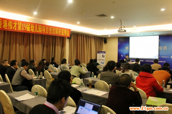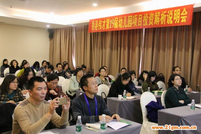 為使投資人對幼兒園項目有更全面深入的了解,保障項目的成功運營,香港偉才教育集團攜資深專家級職業(yè)團隊,以大陸地區(qū)的十多年行業(yè)實戰(zhàn)經(jīng)驗和體系內(nèi)300多家幼兒園的成功案例,于2014年12月20-21日在廣州總部舉辦了“第十九屆幼兒園項目投資解析說明會”,為來自全國各地的投資人提供系統(tǒng)、透徹、務實的投資分析,并到偉才旗下加盟幼兒園實地參觀,共同交流、探討幼兒園投資大計。