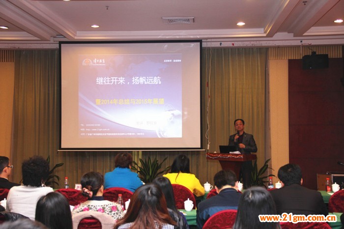 在總結會上,香港偉才教育集團、廣州偉才科教技術開發有限公司董事長羅駭浪先生在回顧偉才所走過的15年征程時,感慨萬千。面向2015,羅駭浪先生和與會伙伴分享了公司未來的宏偉藍圖。同時,對每一位伙伴的辛勤付出表示了最誠摯的感謝,對新一年的工作做了細致的規劃和指示,使在場的偉才伙伴熱情倍增、信心爆棚。