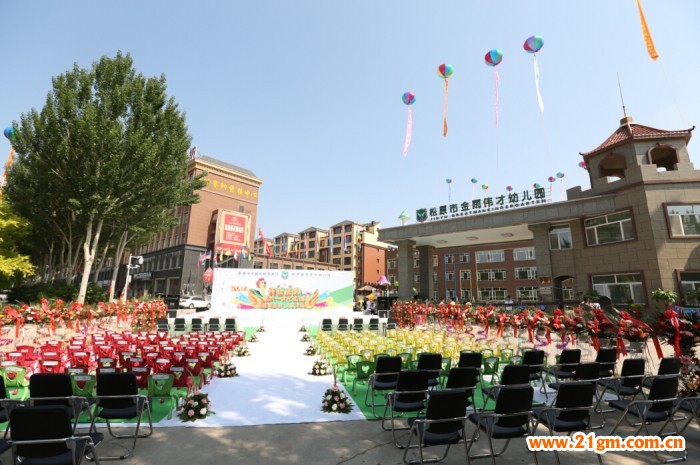 2015年5月27日上午,吉林松原金雨偉才(國際)幼兒園上空的氫氣球迎風搖擺,滿載著幼兒園全體成員的喜悅和熱情,迎接四方賓客。