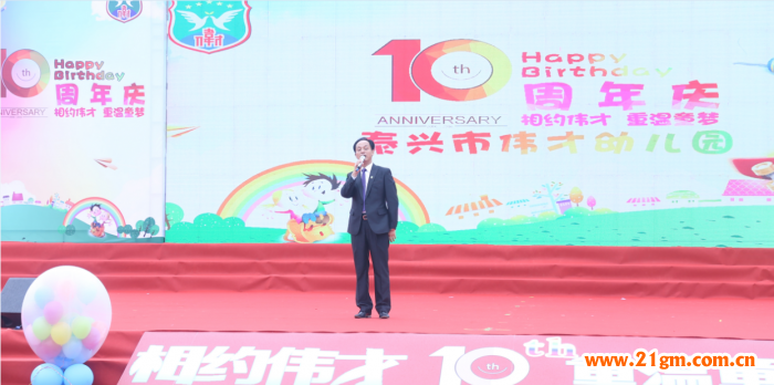 彩色童心,閃耀十載,2016年5月28日,江蘇省泰興市偉才幼兒園迎來建園10周年大喜的日子,一場盛大的慶典大會在熱情洋溢的鼓舞飛揚聲中拉開了序幕。中國民辦教育協會副會長楊志彬先生、泰興市人民政府副市長周桂香女士、泰興市教育局局長尹松林先生、廣東偉才教育科技股份有限公司(簡稱偉才教育)董事長羅駭浪先生等領導嘉賓共同出席了該慶典活動。