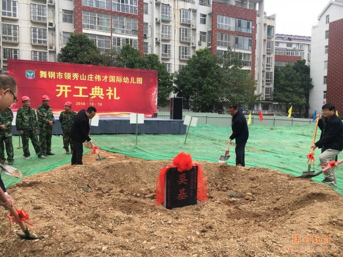 開工典禮當天,在各級政府領導、社會各界的關懷與支持下,占地八畝的舞鋼領秀山莊偉才幼兒園及偉才豫南幼教培訓基地工程順利奠基。據悉,舞鋼領秀山莊偉才幼兒園,建設面積約4500平方米,規劃設置12個班級。偉才教育副總裁林文鋒先生在開工典禮上表示:我們將以一流的辦園標準,配套完善的硬件設施;以先進的教育理念,配套高品質的教育服務,把舞鋼領秀山莊偉才幼兒園打造成河南省級示范園!