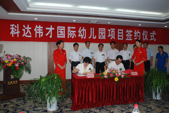 2009年7月17日,科達集團與香港偉才(國際)教育集團簽訂合作協議,正式開辦科達華苑第一所教育配套——雙語幼兒園,并命名為“科達偉才國際幼兒園”。 東營市人大常委會第一副主任周燕明、東營市委常委、市委秘書長田振玉、東營市人大常委會秘書長孫三民、東營市政府副秘書長張敏、東營市教育局副局長張義泉、科達集團董事長劉雙珉、科達集團黨委副書記繆春蘭、科達集團工會主席劉愛偉、科達地產常務副總經理尉發宇、科達地產副總經理韓維、香港偉才(國際)教育集團大陸市場總監徐延軍及東營市新聞界媒體朋友參加了簽約儀式。