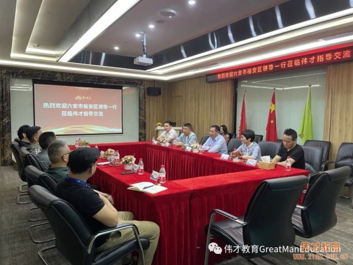 雙方在會議室舉行座談,觀看了偉才教育宣傳片和創莘谷宣傳片后,羅總向客人介紹了偉才教育的發展歷程和未來規劃,詳細闡述了偉才教育的四維矩陣:教育為根,產業為本,科技為驅,資本為器,并就裕安招商引資提出自己的建議。