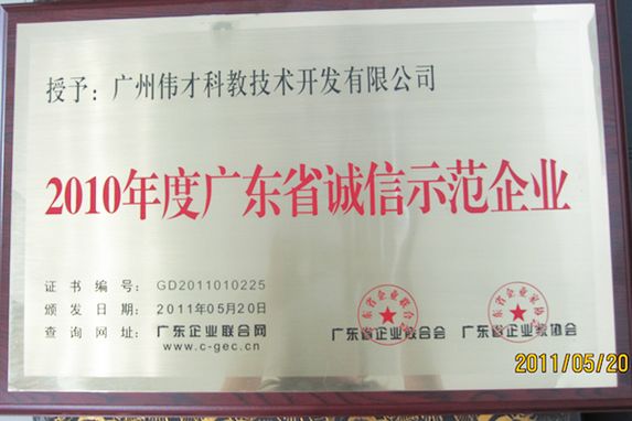 2011年5月20日驕陽似火的天氣好像有意襯托著火熱的場面,由廣東省企業聯合會、廣東省企業家協會主辦的2011年全省“企業家活動日”日前在廣州白云國際會議中心拉開帷幕。廣東省副省長佟星,省委副秘書長王衍詩、省企業聯合會會長羅佛光、亞洲知識管理協會院士陸德等各界領導與來自全省的1000多名企業家代表歡聚一堂。會議表彰了一批2010年度廣東省優秀企業、優秀企業家、最佳誠信企業、誠信示范企業、先進雇主組織。“廣州偉才科教技術開發有限公司”榮獲“2010年廣東省誠信示范企業”,頒發了獎牌和榮譽證書,并根據偉才公司多年來秉承的誠信創業,服務教育的行為,將偉才公司納入“廣東省誠信公約會員單位”。在本次大會有佟星副省長表示,希望全省企業和企業家要在四個方面切實擔當起社會責任。一要堅持清潔生產,綠色發展,承擔起生態環境責任;二要依法生產,承擔起質量安全責任;三要堅持以人為本的管理理念,切實保障員工的合法權益;四要積極參與社會公益事業和慈善事業活動,為建設幸福廣東做貢獻。廣州日報、南方日報、羊城晚報、廣東電視臺等眾多媒體均關注并報道了本次大會的盛況!