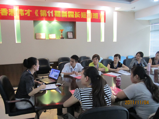 為了規范偉才體系內幼兒園各項管理工作標準,使新園長盡快熟悉、掌握偉才教育理念、管理模式與特點,保證幼兒園管理工作的質量,總部于2011年11月4-6日在廣州舉辦了為期3天的《第11期新園長短訓班》。培訓課程包括幼兒園管理工作、品牌意識、幼兒園教育教學管理以及家長資源利用、后勤工作管理等,理論與實戰相結合。